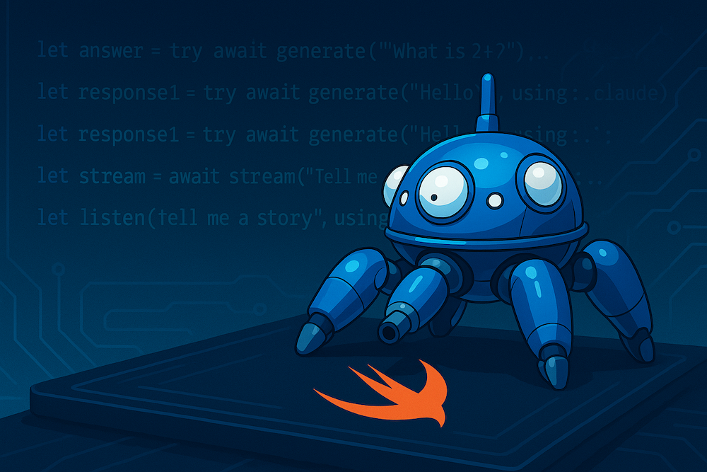 That’s when I remembered Vercel’s AI SDK. Clean, intuitive API. You just call generate() or stream() and it works. Switch models? Change one parameter. So I grabbed their docs, studied the patterns, and decided - let’s steal the good ideas but make them Swift idiomatic.